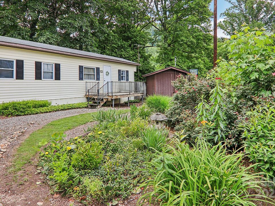 Easily accessible and minutes from Hazelwood and Waynesville. Single wide mobile home on 0.2 acres, with beautiful view of the creek. It offers 2 bedrooms and 1 bath. An established garden is located next to the driveway. Large screened-in back porch with beautiful creek views. A walking bridge crosses to what the previous owners called "Tranquility Cove" by the creek. Same owners for 42 years. There are 2 sheds in the back for extra storage. Gated access is provided to the back area of the home. Features include a new furnace in 2025 and all copper plumbing pipes replaced with PVC 3 years ago. This property had no flood damage from Hurricane Helene; seller stated FEMA came to inspect and verified no water entry. Property is being sold as-is. Buyers are welcome to do inspections, but no repair requests will be entertained. No drive bys.