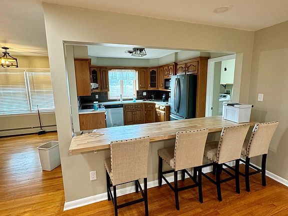 This brick ranch offers 3 Beds 1.5 Baths with a 1 car garage. The 1st level offers lots of natural light, a large living room, a dining room which opens to the new kitchen, 3 well sized bedrooms, and a center hall bath. A large yard can be accessed from around the property. Hardwood flooring throughout. The house comes with a refrigerator, stove, and washer/dryer.
