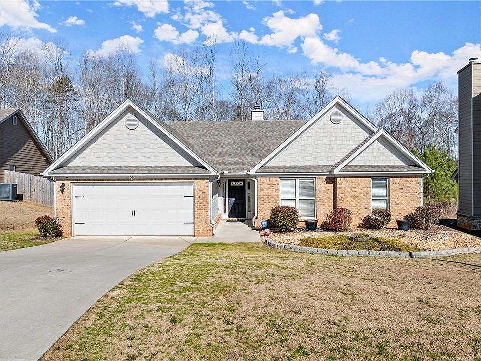 Beautiful 4 bedroom, 2.5 bathroom ranch located within city limits of Statham, GA. Spacious living room with vaulted ceilings and fireplace. Large kitchen with island, plenty of cabinetry, walk in pantry, and easy access to dining area. Luxury appliances include GE 27.9-cu Smart French Door Refrigerator. Garage is heated/cooled with the rest of the house and has been carpeted to use as a bonus room - can easily be converted back to only a garage. Large back covered patio. Fenced in backyard with beautiful hardwood views. The City of Statham is a golf cart community allowing registered golf carts to be operated on city streets and paved recreational paths within the city. No HOA and the home is equipped with an alarm system, doorbell camera and house security cameras at front and back of the home. Home is currently financed with a VA loan, which is assumable.