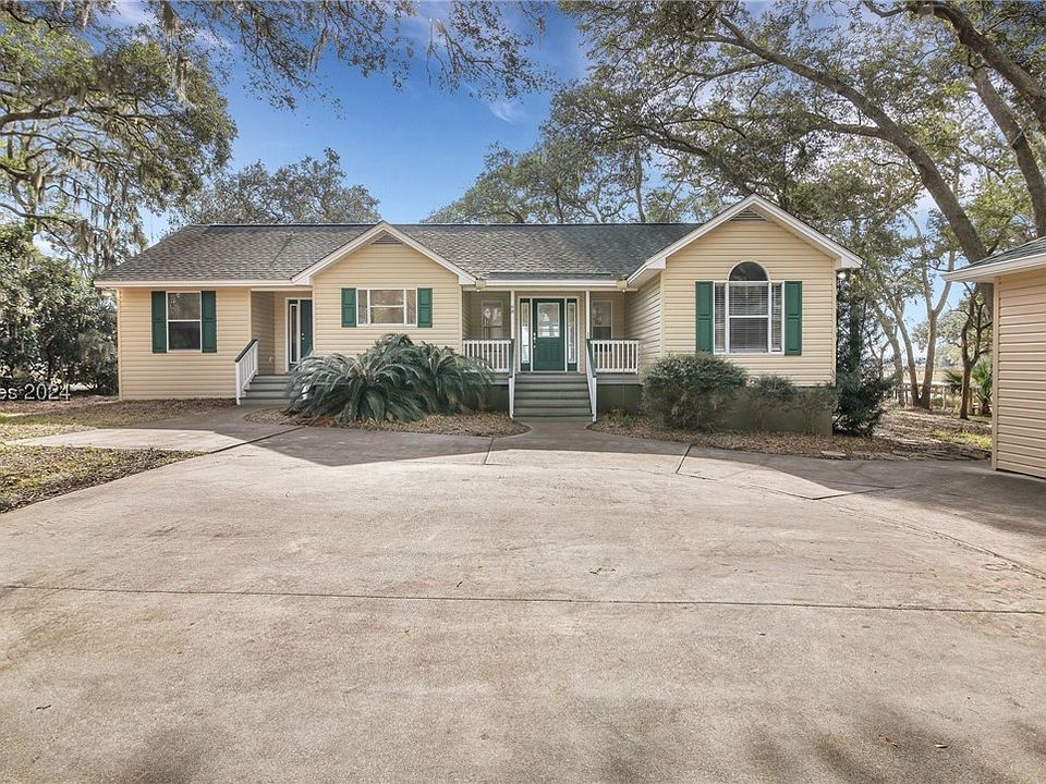 Embrace riverside living in this 3-bed, 2-bath ranch-style home with a 2 car detached garage. Experience one-level convenience, a split floor plan, living room with large windows overlooking the Intracoastal Waterway, and a well-equipped kitchen. Wooden floors throughout the main living area and new carpet in all bedrooms. Roof, HVAC, and foam insulation, all recently replaced. The owners suite offers river views, a large walk-in closet and its own private bath. With breathtaking marsh views and recent upgrades, this home is a blend of beauty and practicality.