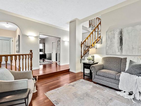 This beautifully maintained four-bedroom home, set on a concrete foundation and backing onto a serene environmental reserve, offers an unbeatable combination of comfort, updates, and location. A welcoming formal living room greets you at the front of the home, while a versatile dining room just off the kitchen can also serve as the perfect home office. The main and upper floors have been freshly painted, and new carpet was installed this year, creating a bright and inviting atmosphere. The updated kitchen features freshly painted cabinets and connects seamlessly to the sunny breakfast nook and cozy living room with its wood-burning fireplace, all overlooking the private yard and nature beyond. Upstairs, the spacious primary suite includes a relaxing sitting area and a generous ensuite, while two additional bedrooms and a versatile fourth bedroom above the garage (also ideal as a bonus room) provide flexible living options. The basement adds even more space with an additional large bedroom, four piece bathroom, living area, wine cellar/hobby room and loads of storage. Important upgrades include the roof replacement two years ago, full replacement of polyb piping, and a newer hot tub to enjoy year-round. Loaded with character, thoughtful updates, and peaceful setting, this is a home you won’t want to miss. Check out the tour for a virtual walk through of this amazing home!