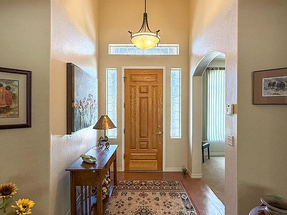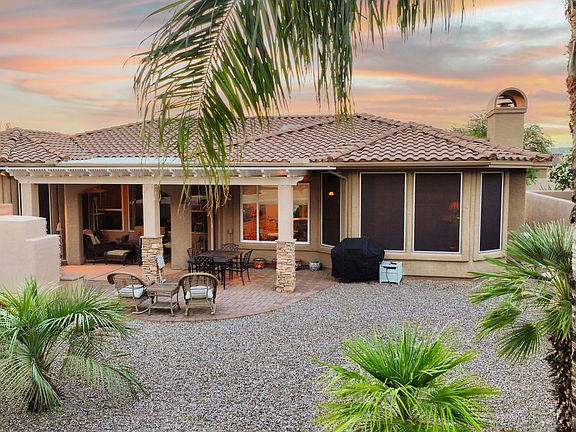 Nestled within the Oro Valley Country Club community and the gated Sunstone Estates, this A.F. Sterling-built home is ideally situated on a quiet cul-de-sac lot with fabulous views of Pusch Ridge. The thoughtful split floor plan features spacious living areas, a formal dining room, and a versatile formal living room. The family room showcases a striking stacked-stone gas fireplace with a rustic wood mantle, high ceilings, and panoramic windows that overlook the Catalina Mountains and backyard. The well-designed kitchen features granite counters, stainless steel appliances, including a gas range, a large island with pendant lighting, a breakfast nook, abundant cabinetry, & walk-in pantry. Step outside to a covered patio with a pergola roof and stone-accented columns. The paver patio, highlighted by a custom stone gas fireplace and lush landscaping, creates an inviting setting for outdoor dining and relaxed evenings.