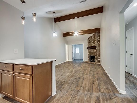 Completely renovated 4 BD 2 BTH one story! Move-in ready home surrounded by mature trees & is ready for you to call it home.Wood-look ceramic tile thru-out the main living areas, high ceilings w/ decorative wood beams,& a floor-to-ceiling brick fireplace. Kitchen w/ Silestone countertops, under-mounted double basin stainless steel sink,tile backsplash, breakfast bar, & is open to the den.Spacious primary BD w/ neutral colors, carpeting,ceiling fan,an extended closet,& a bathroom w/ a tub/shower combo. Secondary BDRMS complete w/ carpeted floors, good size closets, ceiling fans & will accommodate queen sized furniture.Secondary bath w/ a tub/shower & is in the secondary BD wing.The home also has an extra room w/ wood-look ceramic tile floors that could be a study, hobby room, playroom or whatever best fits your lifestyle best! Additional fts:wooded backyard w/wood deck, 2 car attached garage, utility rm in garage, recently replaced AC compressor & coils, & blinds thru-out.