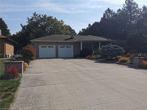 Where to begin! This beautifully maintained ranch on a very serene property is the perfect escape. First glance shows you notice the expansive cement drive bringing you to the oversized double garage. When you open the garage you will notice that it doesn't end there and the one side is extra deep to include a third garage and workshop. A handy person's dream! Now to go inside. The spacious front porch invites you to relax with a beverage of choice and unwind. You enter into a spacious living room with a view to the beautifully updated kitchen and dining area. From there you get a peek into the enticing 3 season room that overlooks a calming landscaped and fenced backyard. Off the dining area is a bright updated main bath with walk in shower, and an expansive master bedroom with loads of closet space and a second bedroom. Downstairs you will discover a large family room with cozy gas fireplace. There are also 2 extra rooms down there for a den or craft space. A laundry room with convenient 2 pc bath is found off the family room also. Don't miss out on a walk around the back yard to notice the additional shed, pond, and the workshop.