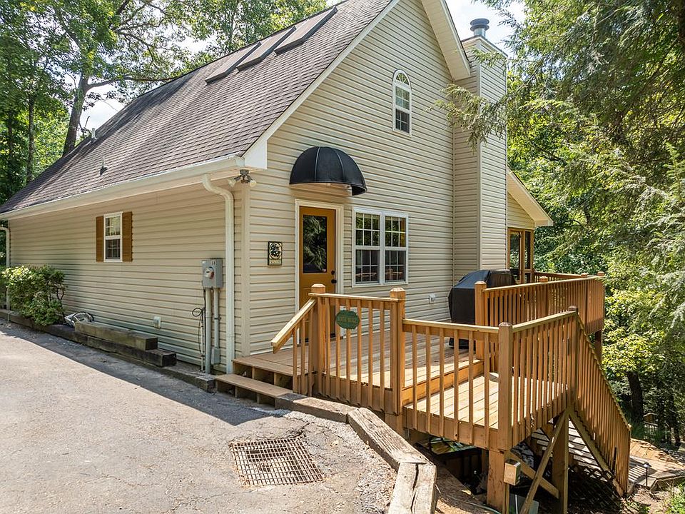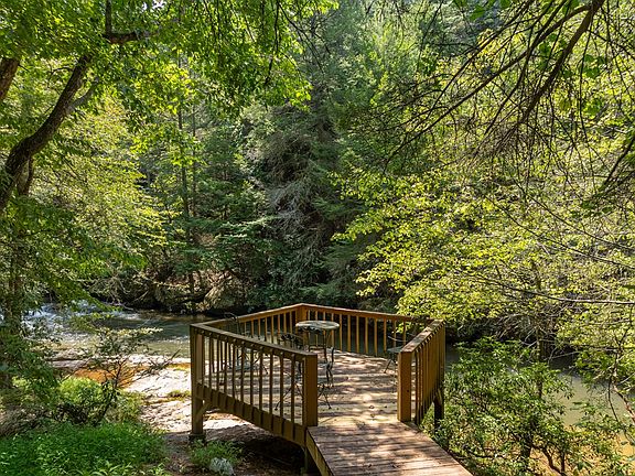 Discover the perfect mountain escape with this charming 2-bedroom, 2-bathroom chalet-style cabin, complete with a cozy sleeping loft. Situated on 107 feet of Cartecay River frontage, this recently remodeled retreat offers serene river views and outdoor living at its best. Enjoy the sounds of rushing water from the screened-in porch, or relax on one of the two riverside decks. Inside, the open-concept living area features a country kitchen, dining space, and a cozy living room with a wood-burning fireplace. Both bedrooms offer private deck access through French doors, while the bright loft with skylights provides additional sleeping space. With modern amenities like a laundry room and a private hot tub, this cabin is the perfect blend of rustic charm and contemporary comfort. Don't miss your chance to own this idyllic riverside retreat, just a short walk from Blackberry Falls. Property was used by the same family since 2003 and they rented it to offset expenses. Short term rentals are permitted.