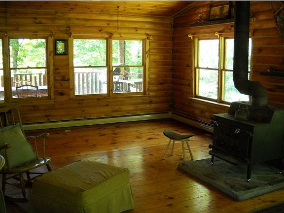 Amazing 4 bedroom, 2 1/2 bath home well sited on over 5 acres with seasonal views of Mt Monadnock!! Nicely landscaped and well maintained home move in ready. Log construction with a mix of log and flat wall space makes this the best of both worlds. Interior design lends warmth and charm to the open concept interior. This home is a delight in all seasons!! Workshop / craft space in the basement and a two car garage with attic space galore!
