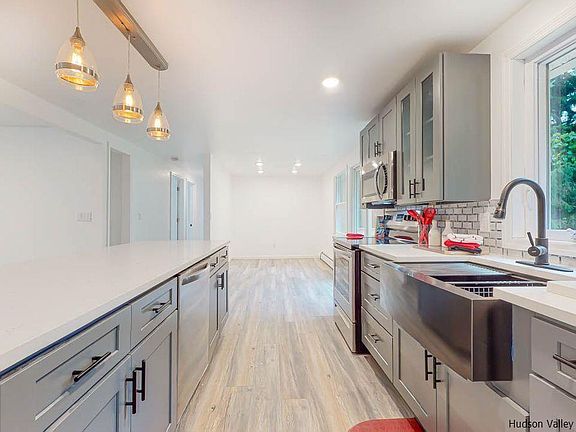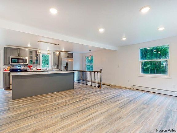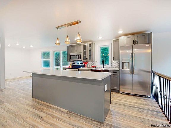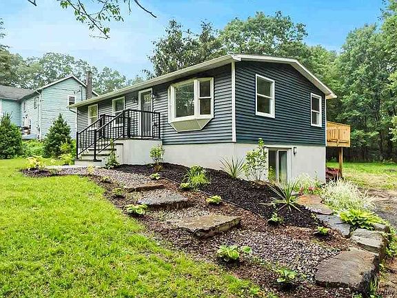Welcome to a wonderfully designed home located right between the Village of Saugerties and the Village of Woodstock. In front, are beautiful trees and flower beds newly redone with tons of color. The home sits on 2 acres, making the backyard or up on the brand new deck a perfect spot to host a gathering or sit quietly and connect with nature. New French drains surround the lower level, which has been redesigned as a very well laid out owner's suite with an extra large closet as well as a roomy L-shaped living space that can be used as a den as well as an office. There is room for both! On the main level is a warm and bright living space as well as a custom open kitchen with a stainless steel farmer's sink, quartz counter tops, an island bar that seats 5 guests, as well as a separate dining area with a sliding door that leads right outside to the deck. The main level also has a full bath and two additional bedrooms. The home is outfitted with smart thermostat, voice controlled dimmers, and a Ring doorbell system. This is a perfectly laid out home designed for comfort as well as privacy and space. It is big enough for a family and small enough to be perfectly manageable as a weekend retreat. The home has a brand new porch as well as all new siding, roof, seamless gutters, electric, plumbing, furnace, hot water heater, and just installed new septic and leach field. The new owner with have nothing to do, but move in and enjoy! Don't miss this chance to live in one of the nicest homes in the best location in the Catskills!