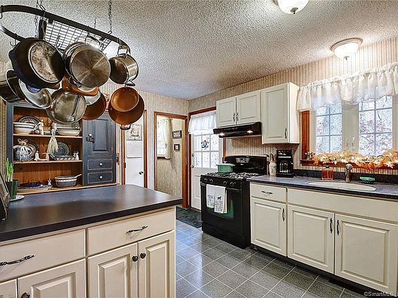 Charming and Rustic Ranch home set on over 2 acres. Quaint property adorned with stone walls, mature plantings and loop around driveway. This private retreat is a must see. Open floor plan with living room open to the kitchen and the dining room. Hardwood floors throughout the home. White kitchen cabinetry with corian counter tops, large center island and fabulous walk-in pantry. Updated full bathroom. New Roof, New Windows and New Gutters with leaf guard inserts for easy cleaning. Central Air conditioning. Large newly painted deck overlooking private yard with lots of nature to enjoy. **This home is in Multiple offers - Offers Due Monday 10**