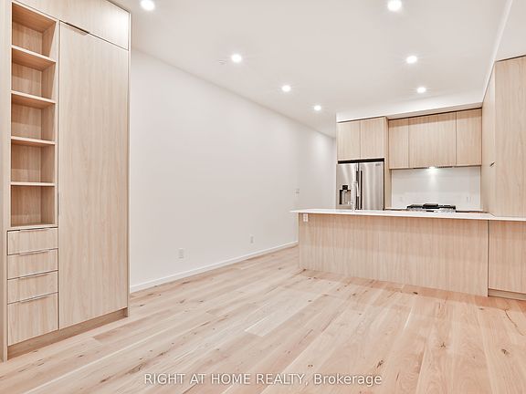 Newly completed and located on a quiet one-way street in the heart of Trinity Bellwoods, this rare three-level suite offers an exceptionally bright and thoughtfully designed home. The open concept main floor features a spacious modern kitchen with full-size S/S appliances and an oversized breakfast bar, while the combined living-dining room is flooded with natural light. Two generously sized bedrooms, one each on the second and third floors, make this a great option for a family or shared accommodation. Private entrance, patio, third-floor balcony, ample closet and storage space, small third floor desk-nook, full-size washer & dryer. Perfectly located with convenient transit connections and steps to Ossington, West Queen Street West, and Trinity Bellwoods Park. Other is third floor desk nook.
