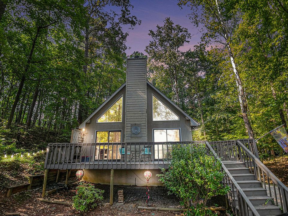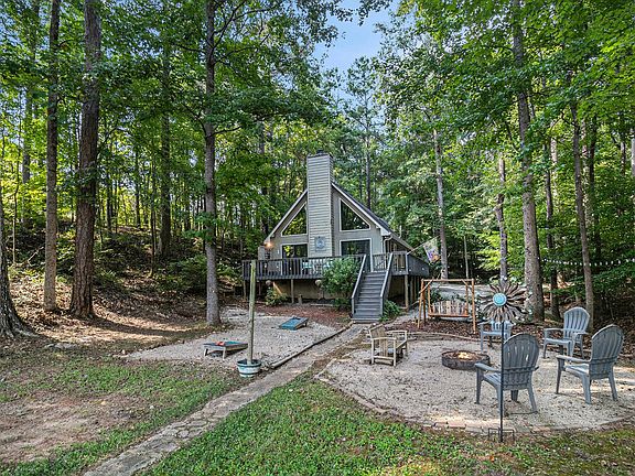 Welcome to your lakefront getaway! This charming Chalet-style home on Lake Sinclair offers peaceful privacy in a quiet neighborhood-with no immediate neighbor either side. Tucked away at the end of a private road with ample parking. Step inside to an inviting open floor plan with beautiful wood floors, soaring cedar vaulted ceilings with exposed beams, and a striking stacked stone wood-burning fireplace. The updated kitchen features stainless steel appliances and breathtaking lake views from every window. The main level includes two bedrooms and one full bath, while the spacious upper-level loft offers a large bedroom with walk-in closet and private en-suite bath-perfect as a primary suite or guest retreat. Outdoor living is just as impressive: enjoy a wraparound deck, flat grassy yard, a fire pit for evening gatherings, and a private walkway to your dock. There's also a large shed in the back with water and electricity, offering extra storage or a potential workshop space and a finish crawl space under the house. Optional furnishings available for purchase. Great opportunity to enhance shoreline/dock access during the lake's scheduled partial drawdown in October-December. Conveniently located near Milledgeville, Macon, Madison, Greensboro, and Gray. Only one hour and twenty minutes from Atlanta. Deeded lot