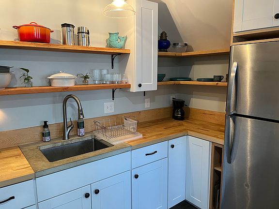 The first floor features a modern open-concept layout, including a fully equipped kitchen with updated appliances, sleek cabinetry, and all essentials provided. The cozy living area is tastefully furnished, offering the perfect place to relax or entertain.