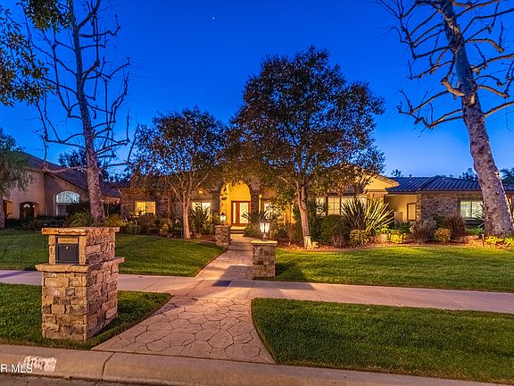 As you arrive, you'll be greeted by a grand 4-car garage with deep, gated, double-wide RV access, complemented by additional 50 amp motorhome plug in and an RV built-in dump, making it ideal for RV enthusiasts. The lush landscaping includes fruit trees such as pomegranate, orange, kumquat, and tangerine, adding a touch of natural beauty to the surroundings.