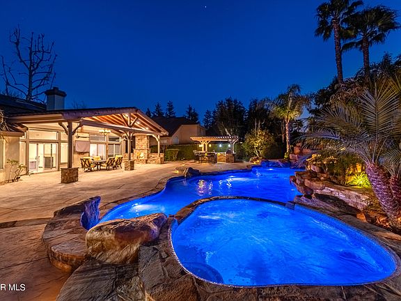 Step outside and prepare to be amazed by the incredible outdoor entertainment space. A remarkable covered patio features remote-controlled power awnings, an outdoor fireplace, a built-in BBQ and bar combo, with high-end amenities. The centerpiece of the backyard is the stunning pool area, complete with a waterslide, waterfall, baja shelf, and grotto, as well as a large spa and fire pit for ultimate relaxation. An outdoor shower and bathroom provide convenience and comfort for outdoor living.