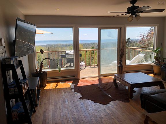 Tucked away in the hillside, secluded with infinite and panoramic views of St Mary’s Bay and the valley. Designed and built to entertain, raise a large family or both, this open concept home does need some updating and renovations . Hosting four large bedrooms, most with custom built-ins, a main bedroom with walk-in closet, ensuite and skylights. There are 3 large full bathrooms including one with a relaxing jet tub. There is a huge games and social area on the lower level, on the upper level we find a massive living/room kept warm by a wood fireplace. The incredible surroundings held in place by the views of the Bay, the sunrises, gardens and pond. The house has oak hardwood flooring, ceramic tiles with in-floor heating areas, a generator ready electrical system with 400 amp panel with transfer switch, climate zones, high speed internet and cable and all sitting on approximately 4 landscaped acres.