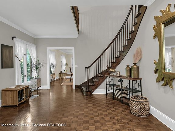 Enter a world of luxury! Step into the breathtaking foyer, adorned with a magnificent custom wood spiral staircase, setting the tone for elegance and sophistication.The expansive living room is an entertainer's dream, boasting a timeless built-in bar, a stunning marble fireplace, and French doors that open to the enchanting patio.Indulge in unforgettable dining experiences surrounded by floor-to-ceiling mirrors in the elegant dining room, perfectly flowing into the new eat-in kitchen featuring a grand island with Thermador and Meile appliances and Caboonet cabinets, and yet another inviting fireplace. Step outside through the doors and discover a private oversized stone patio, nestled amidst over an acre of meticulously manicured landscapes.