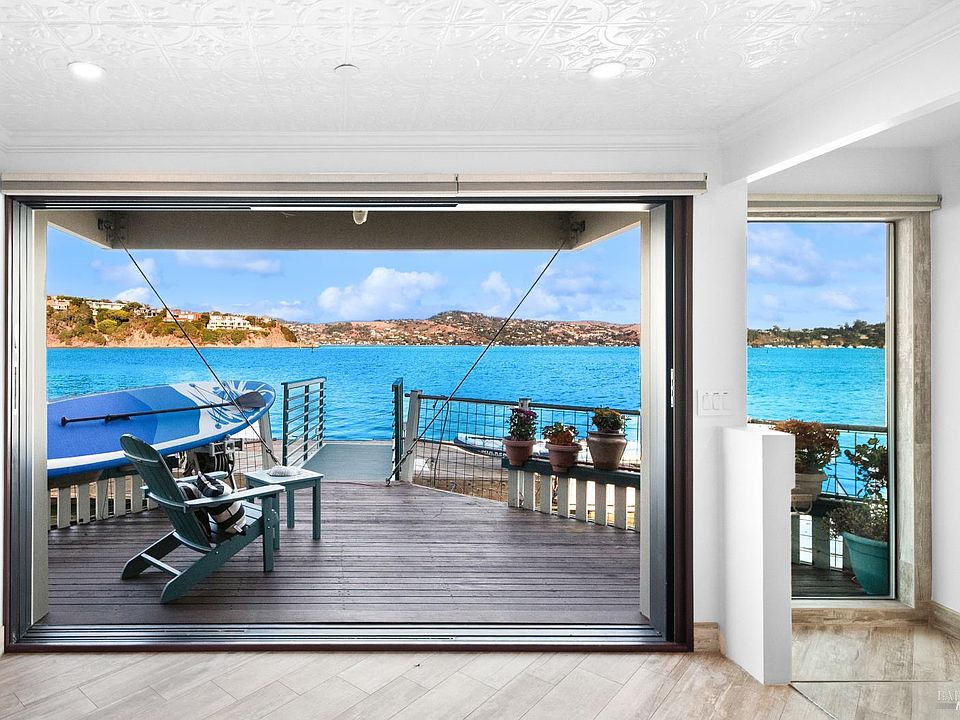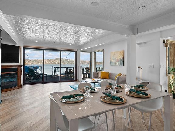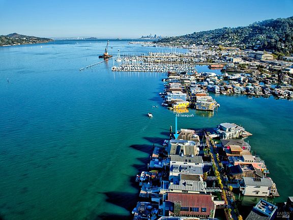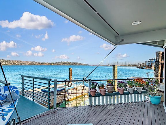 Anchored on a premier deep-water berth in the heart of Sausalito's famed floating-home community, this Issaquah Dock residence is a rare expression of artistry and calm. Designed for those who live creatively, it captures ever-changing light and sweeping panoramas of San Francisco, Angel Island, Tiburon, Strawberry Point, and Mount Tamwithout the intrusion of Highway 101. Over $1.8M in bespoke renovations blend craftsmanship with sustainable innovation. The premium copper roofan elevated choice found on high-end custom homesoffers striking sculptural presence, enduring performance, low maintenance, and a distinctive aesthetic that subtly echoes the elegance of a French-inspired mansard profile. Solar panels with battery storage and a built-in gas generator ensure uninterrupted energy independence. Radiant multi-zone heating and a private elevator enhance comfort, while wrap-around decks dissolve the boundary between indoor and outdoor life. The lower levelwith its own kitchen and built-in bedsinvites guests, creativity, or a flexible studio retreat. With boat access at your doorstep, pet-friendly decks, and expansive disappearing glass doors framing the bay, this is a sanctuary for the senses and a celebration of floating design.