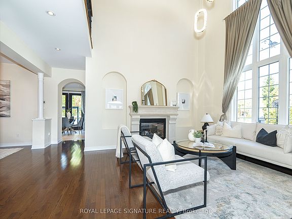 Welcome to 68 Lady Angela Lane, offering nearly 3,000 sq. ft. of bright, open living space on a premium, pool-sized lot backing onto greenspace. Perfectly situated on a no-through, zero-traffic dead end, this home provides exceptional privacy and added safety for a game of basketball or street hockey right outside your door. The kitchen features tall maple cabinetry with crown moulding, quartz countertops, a centre island with an undermount sink, stainless steel appliances, a ceramic backsplash, and a custom walkout door with a three-point locking system leading to the gorgeous backyard. Soaring ceilings and oversized windows fill the home with natural light, while a two-way gas fireplace elegantly connects the family and great rooms beneath a show-stopping chandelier. Rich hardwood floors flow through the formal dining, living, and family rooms, complemented by an oak staircase. The primary bedroom features a five-piece ensuite and a large walk-in closet. Two additional bedrooms share a four-piece bath, while the fourth bedroom completes this home's thoughtful layout, offering ample space and good sized rooms for any need. The bonus den provides a flexible area ideal for an office, study, or quiet escape. The full basement includes a rough-in for a bathroom and awaits your personal finishing touches. Additional features include a central vacuum rough-in, a new high-efficiency furnace with a heavy-duty Trane A/C unit, CAT 5e pre-wiring, and a garage rough-in for EV charging as well as a backyard gas line. Steps from Forest View Park, scenic trails, top-rated schools, and transit, and close to Highways 400, 7, 407, and 404, this home truly combines luxury, comfort, and convenience-while being priced to sell!