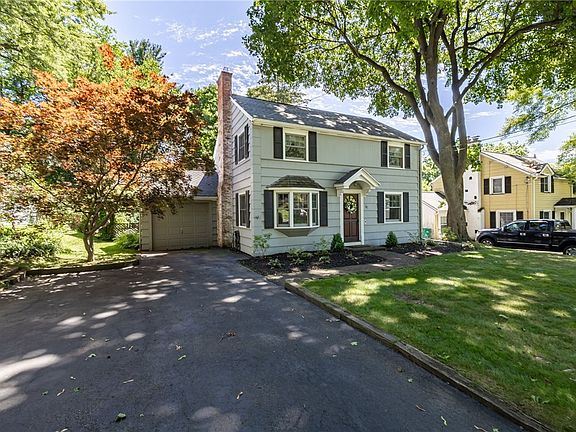 Charming 4 bedroom, 2.5 bath residence lovingly cared for by longtime owners! This wonderful home is situated in a prime location, where you can walk to Ellison Park, Corbett's Glen, Schools & more, plus close to 490/590 and URMC too! Inside you’ll find beautiful features such as an arched entryway, bay windows and dining room with hardwood floors and chair rail. Enjoy entertaining in the large kitchen adjacent to the oversized family room with vaulted ceiling, wood burning fireplace and a wall of windows overlooking the backyard. Additionally, first floor laundry adds to the convenience. Upstairs there are 4 bedrooms, including a primary suite with vaulted ceiling, spacious closet, and ensuite bathroom. Step outside to discover your personal oasis, complete with a custom deck featuring built-in planters, overlooking a large, flat backyard surrounded by mature trees. Desirable Allen Creek/Calkins/SHS Schools. Updated mechanicals: HVAC 2023, Roof (Overlay) 2023, H2O Tank 2020. Delayed Negotiations to 10/7 @10am