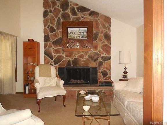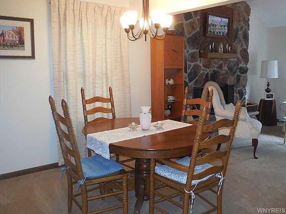 Reroof occurring soon! well maintained ranch done in soothing neutral colors. Cathedral ceiling & sliding doors to the deck from the family room. Eye catching stone wall fireplace in the living room. The kitchen has a separate eating area that's perfect for early morning coffee or a quick bite to eat plus the pass through to the dining room allows you to serve your guests with ease. Plenty of closets & a first floor laundry area. The finished basement room is a great get away for TV or other past times. Convenient location - close to UB & the 290 - yet a quiet place to relax & enjoy nature!!