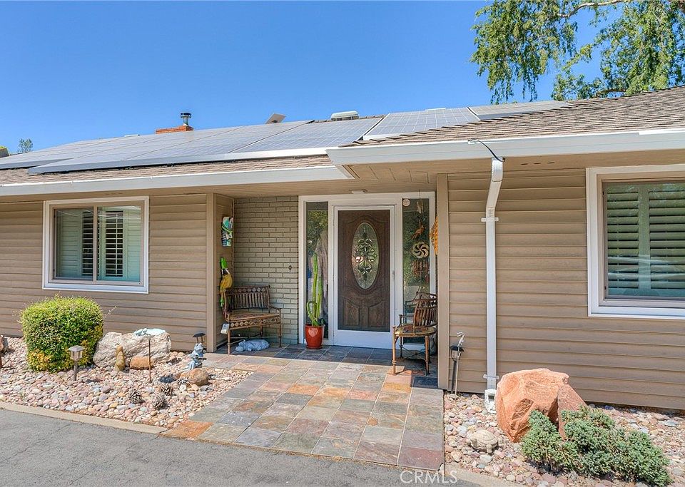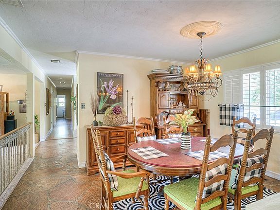 Elegant Country Estate that blends mid-century architecture with a taste of French Provincial and western country charm. Inside, a separate family room features built-in shelves, storage, and a cozy fireplace, country kitchen with tall cabinets, stone countertops, and stainless-steel appliances, including a range with double ovens. Outside, the property offers covered RV parking, and a small family orchard. The attached garage includes its own bathroom, storage cabinets, workbench, and a separate storage area. Explore this exceptional home and its park-like grounds—you may never want to leave!