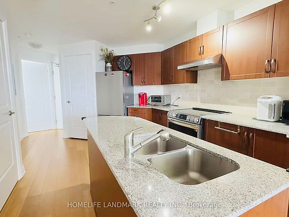 A Sunny, 2 Bed 2 Bath Corner Unit In A Friendly Boutique Building In The Heart Of Markham Village. 9 Foot Ceilings, South West Windows W Walk-Out Balcony. Upgraded Kitchen W/Stainless Appliances, Granite Counters & Undermount Sink, Stunning Master W/Walk-In Closet. Wood Flooring Throughout The Entire Unit. Each Bedroom W/Private Bathroom. Walk-In Shower + Tub. 1 Parking Included. Relax By The Rooftop Deck With Bbqs, Gym, Roof Top Garden, Concierge, Guest Suites, Lounge, Visitor Parking. Wheel Chair Accessible Unit With Ramps. Only 1 Km To Hwy 407. Restaurants & Patios, Shops, Salon, Banks, Cafes @ Doorstep. Walk To Go Station, Bike Trails And More...