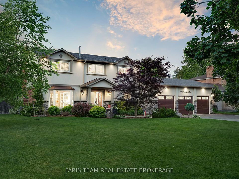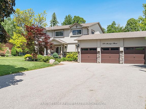 Top 5 Reasons You Will Love This Home: Beautifully designed 2-storey home flaunting updated elegant finishes inside and out, featuring a breathtaking kitchen showcased in LivingSpaces & LifeStyles magazine, four spacious bedrooms including a serene primary suite with a beautifully remodeled ensuite and a spacious walk-in closet, delivering both elegance and versatility. Thoughtfully designed with new engineered hardwood floors on the main level (2025), a refinished grand staircase updated with sleek metal pickets (2025), and a beautifully finished basement offering endless possibilities for relaxation and entertainment with ample storage, a convenient two-piece bathroom, and a large recreation room perfect for movie nights, lively get-togethers, or quiet escapes. Outside, a private backyard oasis boasts a sprawling 1,200 square foot deck overlooking peaceful greenspace with Boyces Creek running through it, ideal for summer barbecues, morning coffees, or starlit evenings, while an inground sprinkler system keeps the lush lawn vibrant with minimal maintenance required. A heated triple-car garage ensures winter comfort, and an extended driveway accommodates up to 12 vehicles, perfect for large families, overnight guests, or those who love to entertain on a grand scale. 3,310 fin.sq.ft.
