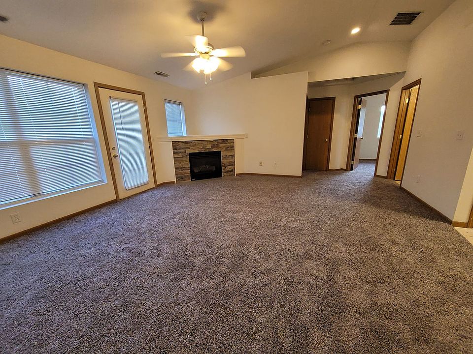 Very nice 2 bedroom 1 bath condo with large balcony, cozy gas fireplace All appliances including microwave and washer and dryer This unit also includes a one stall garage with opener Secure entry Cats welcome with additional security deposit and $25 per month pet rent. Renters insurance required