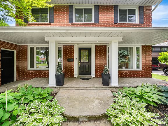 An exceptional opportunity in the prestigious St. Andrew-Windfields neighbourhood, 68 Montressor Drive is a four-bedroom residence, with an expansive frontage of over 70 ft. The beautifully landscaped front gardens create an inviting first impression, complemented by a sophisticated interior that extends throughout the home. A spacious foyer with a sweeping circular staircase sets a grand tone, complemented by a main floor office overlooking the lush gardens. Beyond, the open-concept living and dining room flow seamlessly, providing the ideal setting for both elegant entertaining and everyday family living. The renovated kitchen is equipped with high-end stainless-steel appliances and generous counter space, blending function and refinement. The stunning family room addition amazes, featuring large glass panels, warm wood accents, and a gas fireplace with a stone surround. This space opens effortlessly onto a second patio, offering perfect indoor-outdoor flow. Upstairs, four spacious bedrooms showcase beautiful hardwood flooring throughout. The primary suite serves as a serene retreat, complete with custom floor-to-ceiling wardrobes and a renovated ensuite bathroom. A second updated bath serves the remaining bedrooms with ease and style. The lower level provides impressive versatility with an expansive recreation room, optional gym area or fifth bedroom, and a thoughtfully designed laundry room with new appliances and built-in storage.Outside, the private west-facing backyard offers a tranquil escape surrounded by mature trees and lush landscaping-a true gardener's paradise. Additional features include a side door entrance, walkout to a cedar deck with built-in gas line for Barbecue, and access to the attached two-car garage. Perfectly located just moments from Owen Public School, St. Andrew's Middle School, transit, major highways, and premier shopping and dining, this home represents an opportunity to own in one of Toronto's most sought-after communities.
