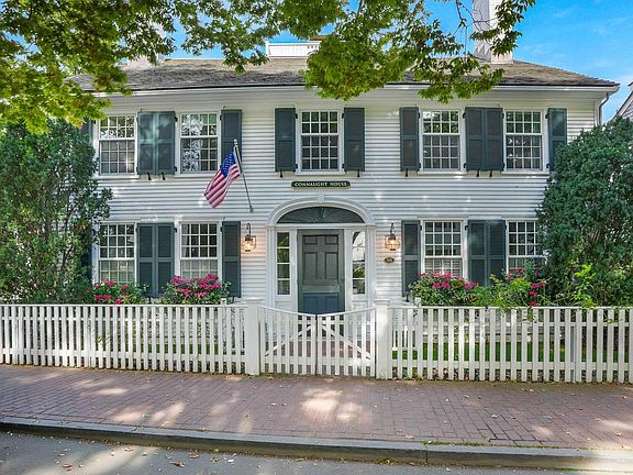 This expansive historic compound in the heart of Edgartown village offers the perfect blend of old-world charm and modern luxury.Just steps away from Edgartown's finest restaurants and shops, this stunning property has been completely renovated by SternMcCafferty Architecture + Interiors, showcasing a harmonious balance of contemporary design and traditional architectural details.Upon entering, you'll be greeted by a sophisticated interior with open-plan living spaces designed for easy entertaining. The mainlevel features sleek modern furnishings, flowing from the kitchen and dining area through French doors to a beautifully landscapedoutdoor patio, ideal for al fresco dining and relaxation. Beyond the patio, a lush lawn and manicured gardens surround animpressive 42' x 18' swimming pool, creating a true outdoor oasis. The second level houses four spacious bedrooms, including aluxurious primary suite with an office, ensuite bath, and a private deck overlooking the pool. The third floor offers a large sleepingarea with six twin beds, a full bath, a game area, and French doors leading to a sun-drenched deck.