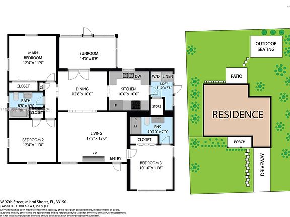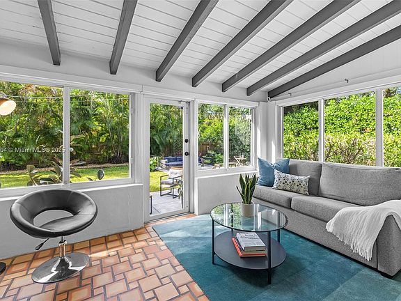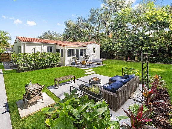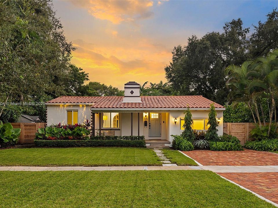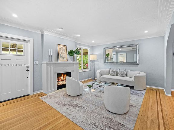 Welcome to The Deco Diamond! Be dazzled by this lovingly preserved and smartly updated 1939 Art Deco gem. Light, bright, and airy with gorgeous original details: hardwood floors, spade-shaped archways, and an engraved limestone fireplace with tropical floral motif. Features include a vaulted wood-beam sunroom, retro-chic bath, and large granite kitchen. Upgrades: impact windows and doors, updated plumbing and electric, new A/C and water heater, and a dreamy new primary suite with marble rain shower bath. Spacious landscaped backyard with new privacy fence, wood-burning oven, and great entertaining areas. All on a quiet, tree-lined, non–flood zone street a few blocks to Downtown Shores shops and restaurants. This Deco Diamond sparkles in the heart of Miami Shores!
