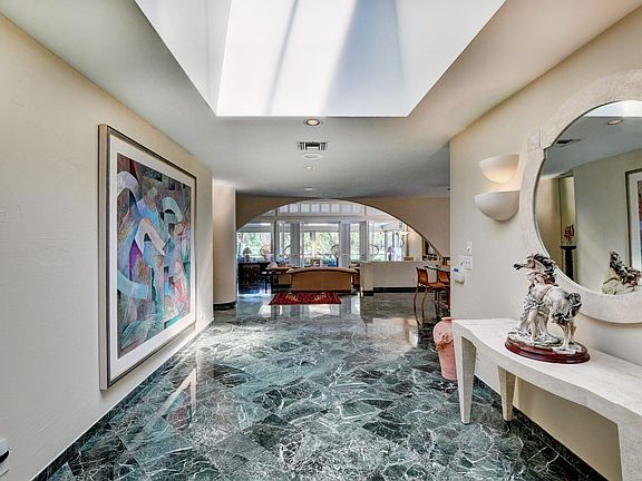 This beautiful, spacious 4BR/4BTH elegant home is located in a private cul-de-sac. A large screened porch with electric storm shutters and 2 side patios look onto serene lake and golf views. Marble tiles throughout. Plenty of en-suite bedrooms for all your family and guests. Plus a large office space and closets galore! A very unique home that must be seen, just waiting for you to make it your own. Don't wait! Make this your home at Hunters Run today and live the dream with 54 holes of championship golf courses, 18 har tru tennis courts, 12 pickleball courts, resort style pool & amenities, hotel, spa, salon, state of the art fitness center and 7 Dining Venues.