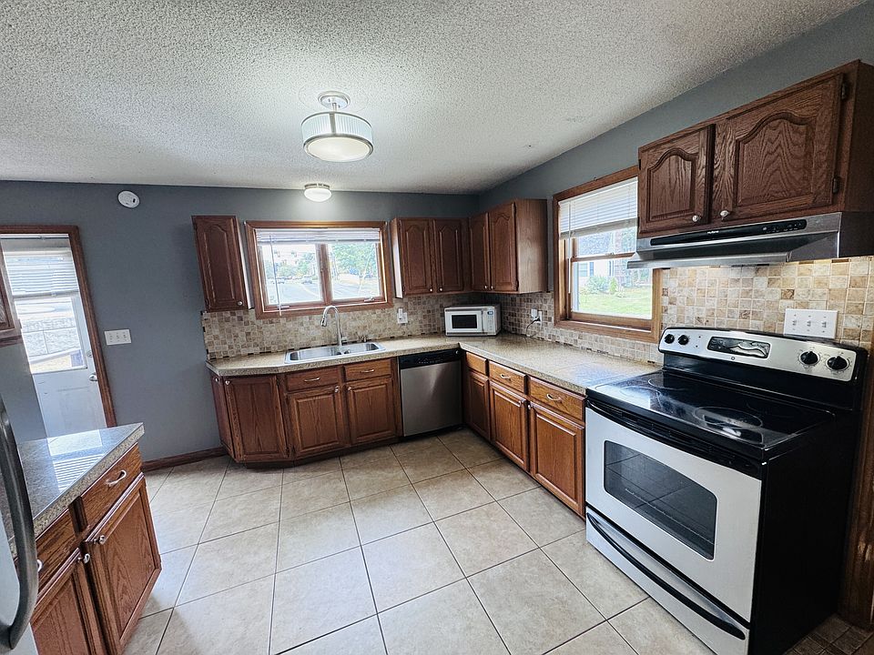 Ample oak cabinetryHardwood floorsLarge windowsTiled backsplashSpacious dining areaWasher and dryer