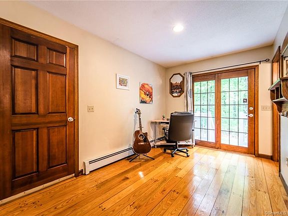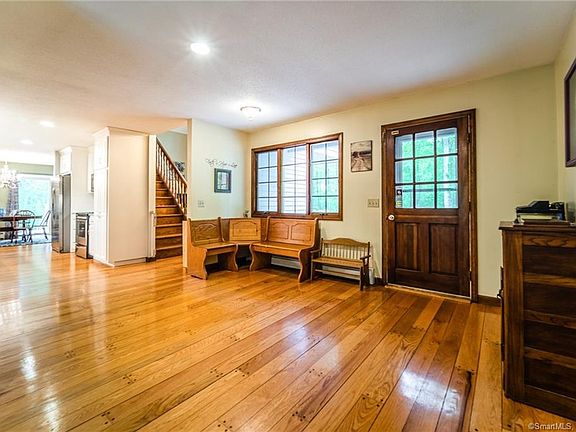 Walk to the lake New England home nestled on a private 3.31 acre lot, 2 car garage, desirable Marlborough. Spacious 2,214 sqft. open floor concept & highly functioning main level, perfect for entertaining. Centrally located kitchen granite, stainless, custom cabinetry, soft close drawers & bright ambience. The kitchen connects to the dining room with easy access to the large back deck & fenced in yard. The great family room features vaulted ceilings, a cozy wood stove & is an ideal space for extending conversations. Conveniently located main floor office area, updated half bath & first floor laundry makes for easy living. Stunning wide plank hardwood floors that offer character & charm. The 1st floor master has it's own private bath, double sinks, a dual closet lined hallway, connects to deck. Upstairs features an extra finished space for a 2nd office, hobby or playroom. This level also has 2 additional bedrooms & a full bath. Large basement that can be finished for extra living space. Pellet stove offers additional heating option. House is wired for generator and alarm. The owners have completed over 60K in updates since purchasing, including roof, exterior, furnace, kitchen & much more Please see full updates list attached to the MLS. The location is UNBEATABLE-walking distance to beautiful Lake Terramuggus, Blish Park, playgrounds, pavillion, tennis & basketball courts. Enjoy what Marlborough has to offer with easy commutes, sought after schools & a new beautiful Big Y.