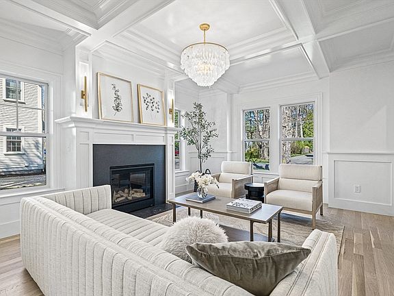 Stunning, brand new 5-bed Colonial crafted by one of Wellesley's most sought-after builders. This home boasts a fabulous floor plan with soaring ceilings, exquisite millwork, abundant windows, and designer fixtures. The first floor showcases a grand foyer, open-concept chef's kitchen, fire-placed family room, formal living room, and a 1st-floor study. Upstairs, find four generous bedrooms, including a primary suite with a luxurious spa bath featuring radiant heated floors. The finished lower level offers a gym, recreation room, and 5th bedroom and bath. The property also features a two-car garage with high ceilings and an electric charging station, radiant heated oversized mudroom, gorgeous stone patio, and a large level yard overlooking Perrin Park. A truly exceptional home!