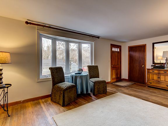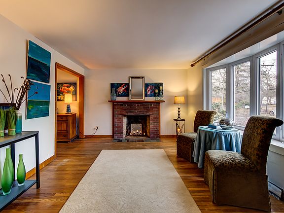 Welcome home to this charming 3 bedroom split-level home situated on a beautiful lot close to the center of town near the lake, rail trail, and shops! The first floor features a living room w/coat closet, bay window, hardwood floors & brick fireplace with wood mantel & slate hearth, plus spacious open kitchen & dining room w/hardwood floors. The kitchen offers a gas range, painted cabinets & built-in buffet. Off the kitchen/dining room is a lovely 3-season porch which accesses a bluestone patio and large level yard. The upper level has a master bedroom w/hardwood floors & double closet, two bedrooms each w/closets & built-ins & full bath. A fantastic family room recently painted with new flooring, custom built-in shelves and half bath are found on the lower level. Access to basement, one-car garage and yard are from the lower level. Central air, newer septic system, updated windows & roof (9 years). Come view this much admired custom home that has been in one family since 1961!