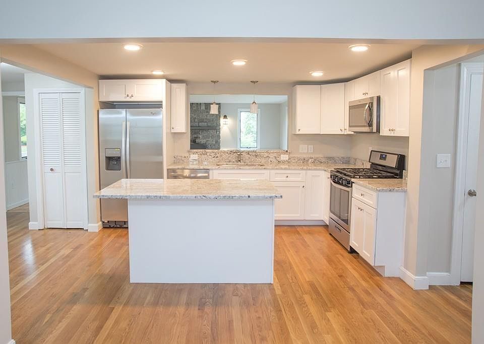 Newly renovated single family house with four bedrooms and two full bathrooms in Dedham. Located on a quiet cul-de-sac within walking distance to Legacy Place, Whole Foods, Costco, and lots of stores and restaurants, short walk to Dedham train station going to Boston within 20 minutes. Minutes getting onto Route 128/ Route 1. You can not beat this location. With a modern kitchen with granite counter-tops, island, new refrigerator, and new stove with an oven. Gleaming hardwoods through out. A very warm living room and great family room that offers plenty of space for family time. Two bedrooms and one full bath on the first floor; and two bedrooms and one full bath on the second floor. And a finished basement. Plenty of storage room! It will be good for either one family or two persons/families to share! All you have to do is move right in Utilities not included. No smoking.