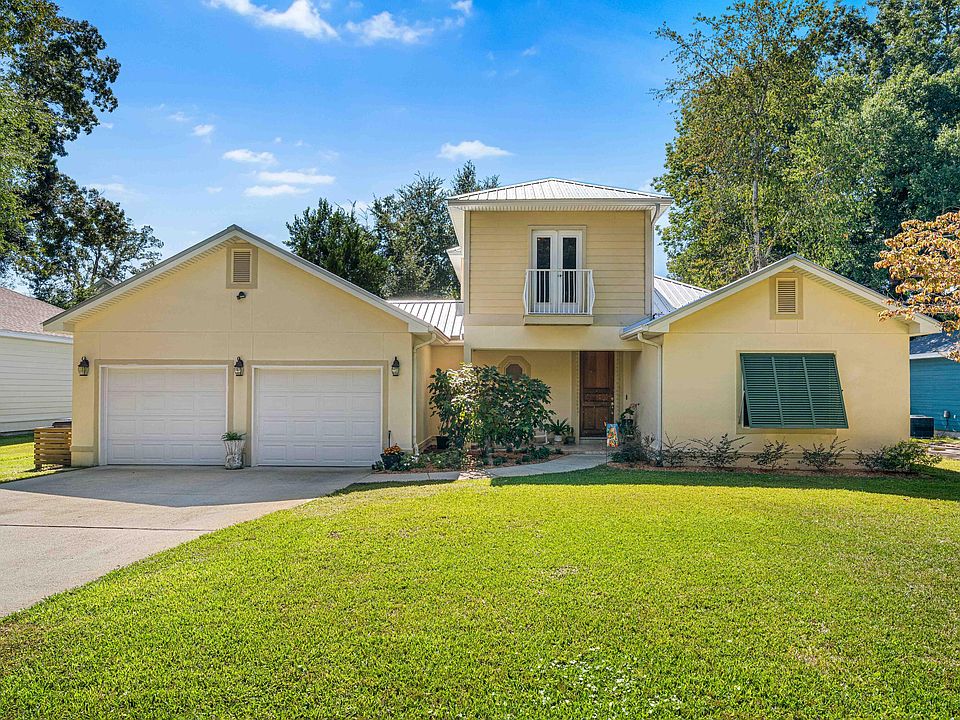 Tucked beneath a canopy of majestic oaks just steps from the bay, this beautifully crafted 4-bedroom, 3.5-bath home blends timeless Southern charm with thoughtful updates and inviting living spaces.Step inside to discover a sun-drenched family room anchored by a cozy fireplace, where oversized windows frame views of the lush courtyard beyond. The open floor plan flows seamlessly into the gourmet kitchen, showcasing granite countertops, rich cherry cabinetry, full granite backsplash, and a breakfast bar ideal for casual meals or morning coffee. Designed for modern living, the home features two primary suites on the main leveloffering exceptional flexibility for multi-generational families or guests seeking privacy. The luxurious primary retreat includes a double vanity, jetted soaking tub, and separate walk-in shower. Upstairs, two additional bedrooms share a full bath, both featuring charming Juliette balconies perfect for savoring morning breezes.
