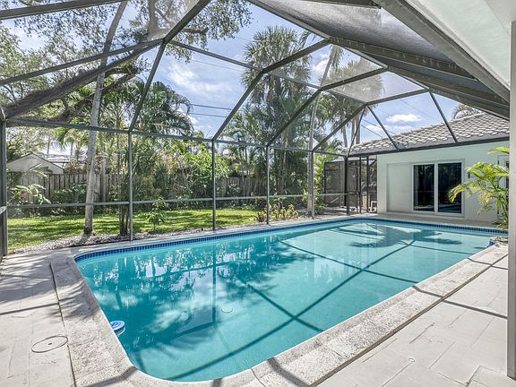 Highly sought after oversized corner lot in the coveted neighborhood of Palmetto Park, East Boca Raton. Spacious 4 bed / 3 bath with a split floor plan, European remodelled kitchen and hurricane windows and doors throughout. Outdoors brings you to a large pool with a fully domed screened outdoor living space. Pocket doors and a kitchen serving hatch allow for indoor-outdoor living on this fully fenced property with extra space for boat storage and yard. Enjoy tree-lined streets where you're walking distance to Addison Mizner K8 A-rated school, 1-mile to Boca Raton Hospital, 1.5 miles to Mizner Park and only 2 miles to the beach! Pool was resurfaced in 2022, A/C 2022. A house and neighborhood you don't want to miss with NO HOA.
