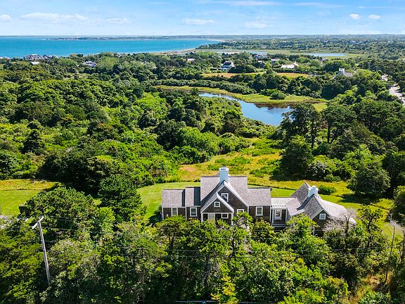 Windsong of Shawkemo is a remarkable property in the exclusive Shawkemo area. This stunning home designed by Gwynne Thorsen is nestled in a serene and picturesque setting, surrounded by over 30 acres of conservation land on its north and east sides, assuring privacy and tranquility. The thoughtfully designed home, surrounded by natural beauty, offers breathtaking views of the neighboring conservation land and vistas that stretch to Polpis Harbor and beyond. Whether you enjoy the beautifully maintained and gracious home or embark on a transformative journey, this property presents numerous options. The expansive 5-acre property is a rare gem, with significant ground cover remaining and expansion options. With its generous size, the lot provides a unique opportunity to create a compound-style retreat with a main house, guest house, garage, and pool. Imagine waking up to the serene beauty of the surrounding landscape, enjoying the peacefulness of the conservation land and vistas, and everything this exceptional Shawkemo property affords.