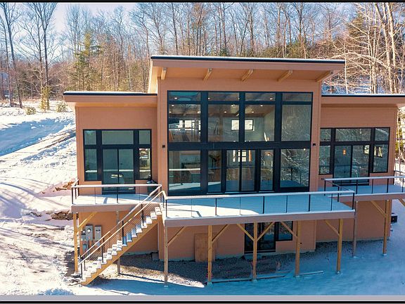 Plymouth, NH - Stunning Custom Home with Breathtaking Pemi River Valley Views. Experience modern luxury in this custom-built masterpiece, perfectly positioned to capture panoramic views of the Pemi River Valley and surrounding mountains. From the moment you step inside, a full wall of windows floods the living room and kitchen with natural light, framing the incredible scenery and setting this home apart from the rest. Designed with soaring ceilings, exposed beams, and sleek contemporary finishes, the open-concept living space offers a striking balance of warmth and sophistication. Tucked discreetly behind a flush-mounted door, the primary suite is a private retreat. A glass-walled walk-in closet seamlessly divides the bedroom and en-suite bath, where you'll find a spa-like oasis featuring a double-doored, glass-enclosed shower with dual showerheads—including a luxurious rainfall shower—soaking tub, and a private balcony. A second spacious bedroom, a den, and another beautifully designed full bath, along with a stylish half bath, complete the main level. Downstairs, the lower level offers a third bedroom, an additional custom-tiled glass bath, laundry, utilities, and direct access to the oversized two-car garage. This home is packed with high-end amenities, including a heated driveway, LED lighting, and so much more. A true architectural gem, this one-of-a-kind property is a must-see! Showings begin Monday 2/10/25.