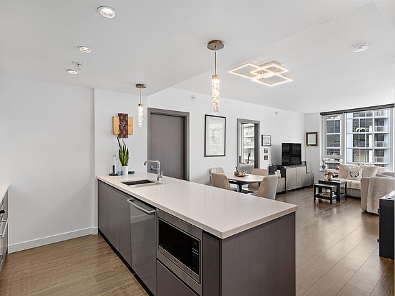 High ceilingsHardwood flooringCity and water viewsPrivate balconyModern kitchen