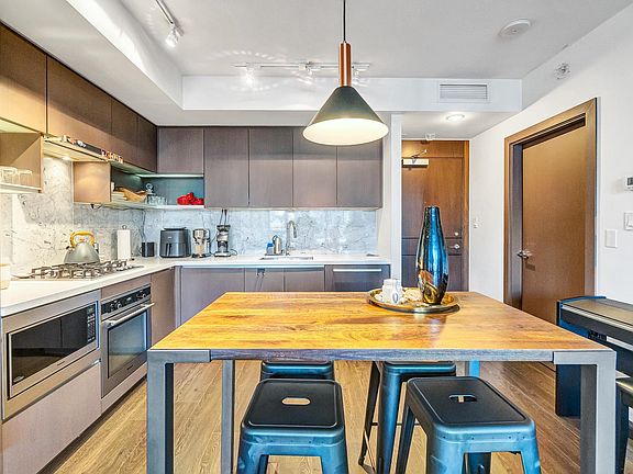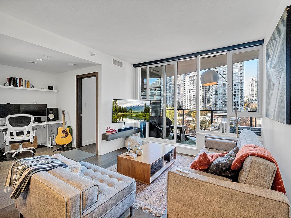 Experience modern comfort and convenience in this fully furnished 1-bedroom + den home at One Pacific, offering 616 sq.ft of thoughtfully designed space plus a 90 sq.ft balcony. The open-concept layout features contemporary furniture, a sleek kitchen with stainless steel appliances, and a bright living area that extends outdoors. The bedroom includes a queen bed and ample closet space, while the den is ideal for a home office. Enjoy in-suite laundry, air conditioning, and gas, hot water, and heat included. Residents have access to premium amenities including a glass-bottom pool, sauna, lounge, gym, and concierge. Located in Yaletown steps from the Seawall, SkyTrain, cafes, parks, and dining.