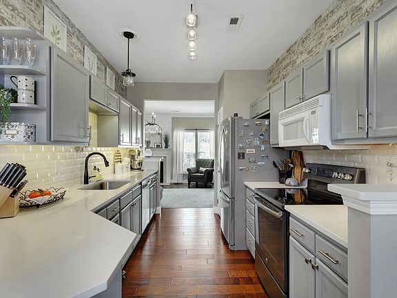 Gorgeous and Beautifully Updated Townhome is Ready and Waiting for you. This Spacious 3 Bedroom / 2.5 Bath home is located in Spring Crossing and it is absolutely stunning. The owner has completed numerous updates that make this home a truly special find. The Kitchen has been updated with Quartz Counter tops, Beveled Backsplash, Under Cabinet Lighting, Stainless Dishwasher, and new Sink. The Furnace was replaced in December 2020 and Air Conditioner replaced in 2016. New Carpeting installed Upstairs in 2021 and pristine Engineered Hardwoods installed Downstairs in 2017. The Breakfast Room has Plantation Shutters (2021) that add a very upscale look and new Blinds throughout the rest of the home in 2020. Crown Molding was added to the Great Room in 2022 that compliments the beautiful Custom Built-In Bookcase and Fireplace with Gas Logs.