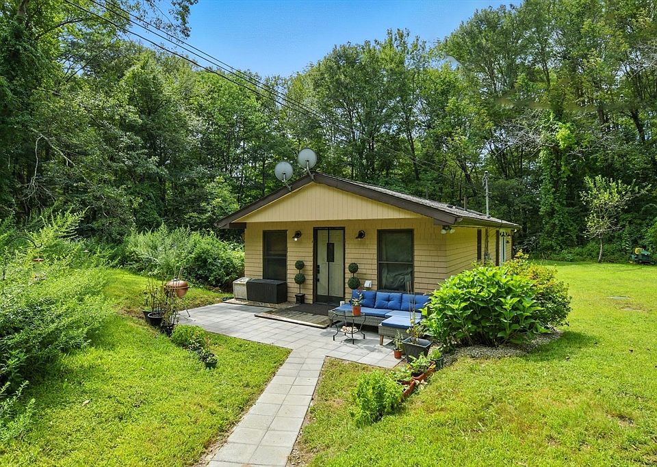 Updates (APO) within the last 9 months include 3 Mitsubishi mini-splits, full insulation, sliding glass door, electrical panel, full-load Generac generator. Appliances are LG & Bosch, new within the last year and a half, and include: washer & dryer, dishwasher, & double wall ovens with air fryer. Nestled in a clearing in the woods down a private gravel road, this charming bungalow offers peace and privacy, with easy access to serene nearby Brookhaven Lake. The residence centers around a high-ceilinged great room, which is open to the well-appointed kitchen. The newly-renovated kitchen features marble countertops and backsplash & professional style appliances. Two bedrooms flank one end of the great room, on either side of a whitewashed plank feature wall. At the other end of the home are a mudroom, dining space, and a full bathroom & laundry with additional storage. Imagine beginning each morning in these tranquil spaces filled with natural light, or out on the sunny patio.