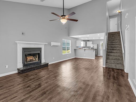 The first level features a spacious primary bedroom and full bath, along with a convenient laundry area for easy access. The living room welcomes you with a wood-burning fireplace, creating a cozy centerpiece for gatherings or quiet evenings in. Durable vinyl plank floors flow throughout, offering both style and easy maintenance.