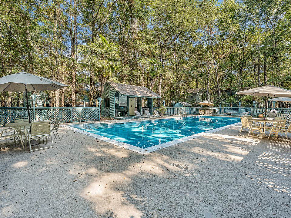 A covered carport and outdoor storage unit add practical appeal, while the home's setting offers a peaceful sense of space surrounded by nature. The neighborhood pool is just moments away, offering a refreshing retreat on warm days.