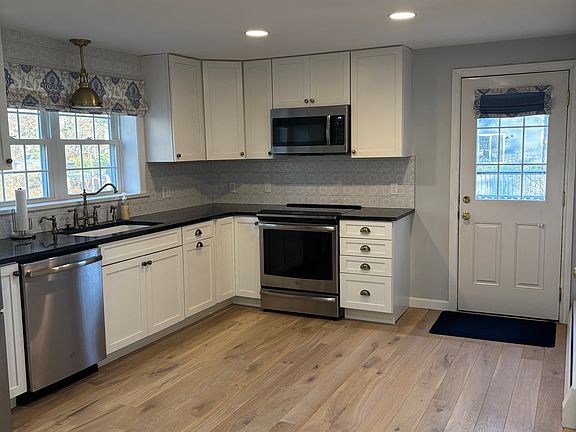 Larger side of duplex. Kitchen, bath, bedroom, living room upstairs. Bedroom, walk in closet, bath, plus 2 additional rooms downstairs. Mini-split cooling and heating throughout plus oil heat. Side deck and large yard. Walk to salt pond.