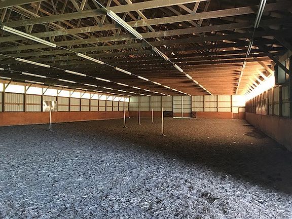This property is AWESOME! Beautiful home that overlooks a fully stocked lake with dock. Huge horse barn with 13 stalls and an indoor riding arena. Over 8 miles of recreational trails for riding horses or ATVs. Small cabin with bigger lake that has it's own island, outdoor pizza oven, and dock.