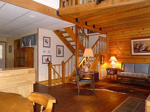 Meticulously maintained mountain cabin- Home features open living, kitchen & dining with knotty pine walls, soaring ceilings & the warmth of a wood burning stove- great natural light. Downstairs large utility/mud room with tile floors & media room - upstairs bedroom #2, second bath & great sleeping or office loft spaces. Parking on 2 levels. Newer flooring, newer appliances, upgraded electric, newer decks & covered exterior steps, workshop. Front & back decks- VIEWS. Metal roof. Furnishings negotiable.