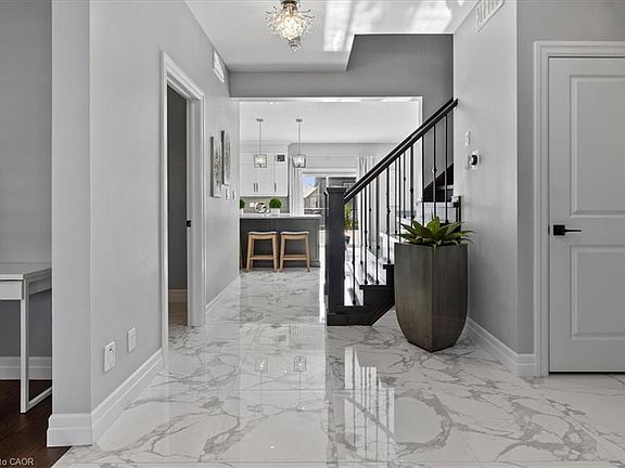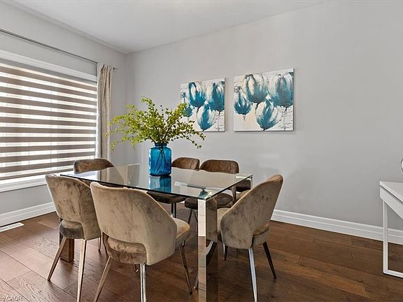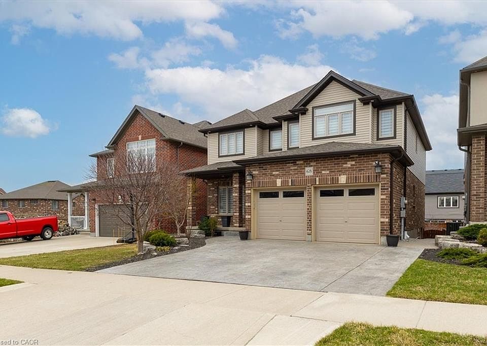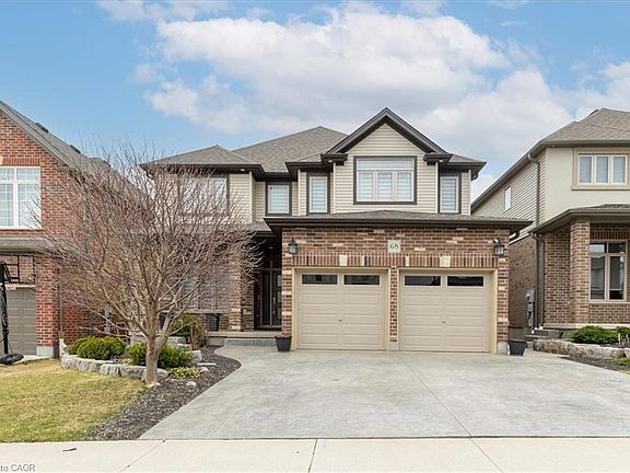 Stunning details! This Doon South Family home showcases beautiful finishes on all three levels. Located on a quiet street, 68 Valleyscape Drive features a concrete oversized double driveway and walkway leading up to the front door. A luxury high gloss porcelain floor spans the foyer and the mudroom and flows into the oversized two-tone kitchen with beautifully contrasting cabinets. The kitchen also features an oversized island, walk in pantry, quartz countertops and built in stainless steel appliances. The back of the home is oriented south making for maximum light exposure and flooding the space with brilliant lighting in the morning hours. Wide plank hardwood flooring finished the formal dining room and the family room; a classy stone veneer fireplace with gas insert and wood mantel feature wall is the focal point of the family room. The second floor takes full advantage of the morning sunshine. Two walk-in closets are separated by the hallway leading into the 5 piece, spa like primary ensuite, complete with double vanity and luxury glass shower. The lookout basement is huge bonus space serving as a recreation room complete with modern pot lighting, elegant %V feature wall, and fifth bathroom, this one offering 3 piece and elegant barrier free shower. The backyard is fully fenced and features mature fruit trees, ground level concrete patio, and stairs leading up to the deck at the kitchen level. Quiet family neighbourhood with close proximity tot the 401, don't miss out!